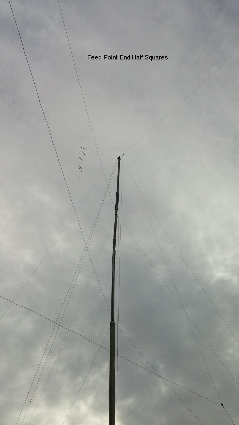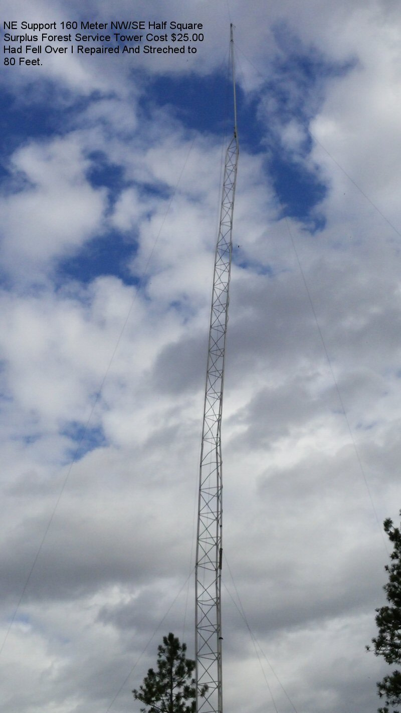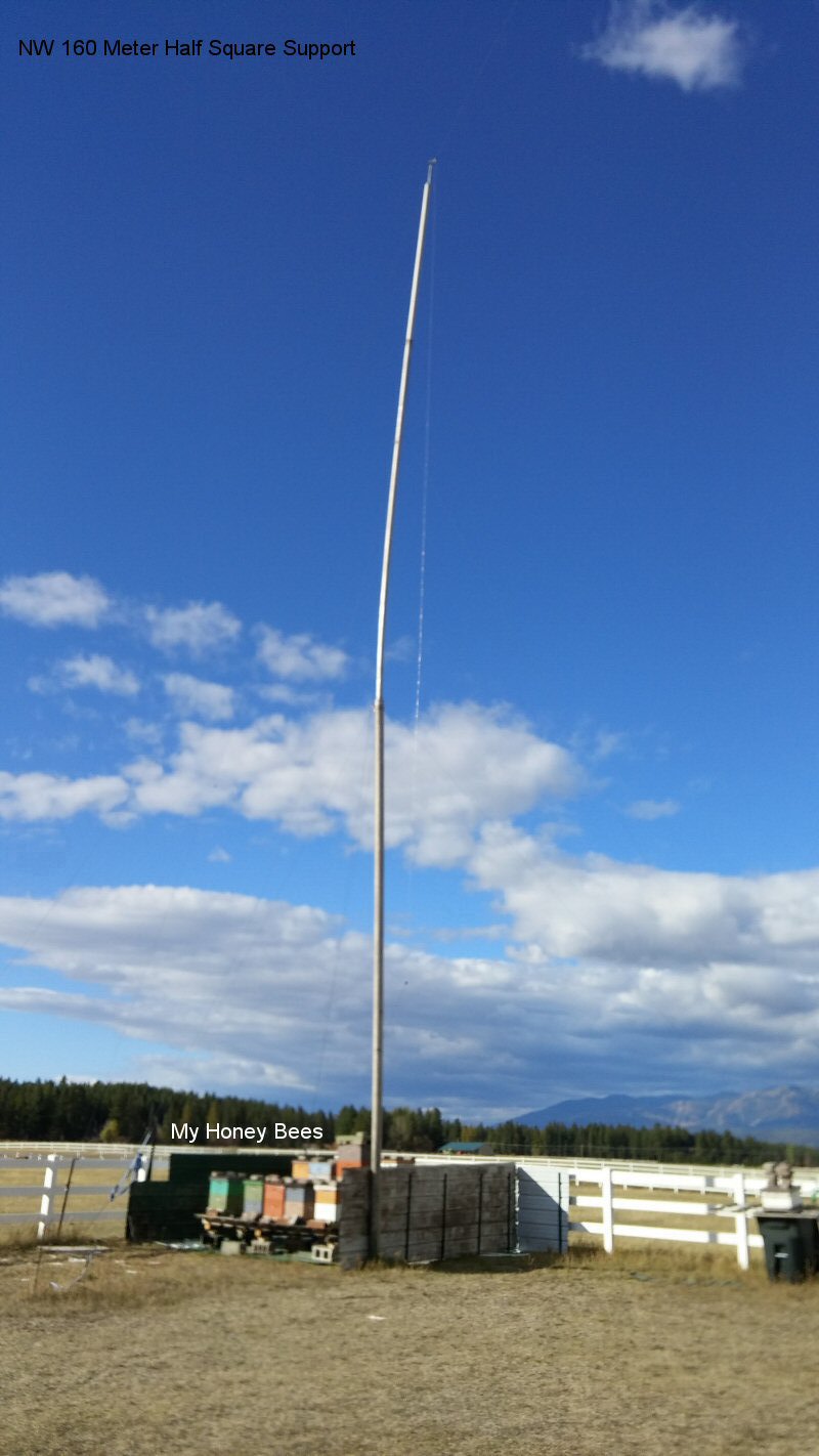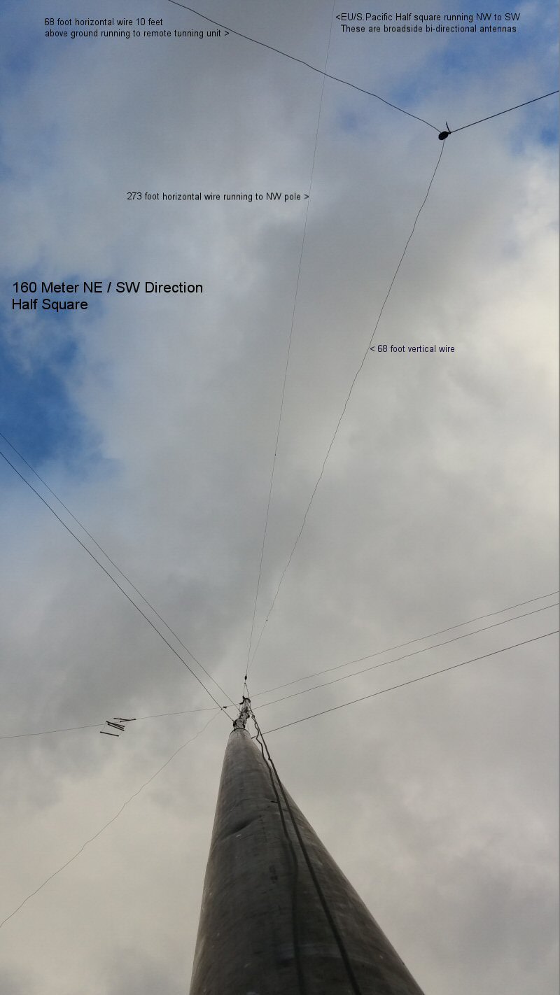 | Hello I want to explain a bit about Half Square antennas. I do have the 100 foot tower and tried it on 160, it works ok for transmit but not for receive as the noise is extremely high. In my previous QTH I had a 140 foot vertical made from irrigation pipe with 40 feet of top hat. It worked absolutely like a dream for transmit but as with my tower was a disaster on receive, however there I was surrounded by wheat fields and had 8, 1 wavelength beverages on the eight compass points. I could hear very well and transmit same. I actually had that vertical in this new QTH, but I have no room for the beverages. As a result of having so bad receive I got lazy and did not keep my guy's (Poly Rope) tight as I should have and around 1995 we had a bad storm hit and had wind gusts of 100 MPH for a week. I was stuck in the house with pneumonia and I knew the vertical would probably come down, but had no options, it took three days to bring it down, but at last it did. After that I was just not interested in putting up another pipe vertical. I was blessed however to run into another ham here in the valley that had this 100 foot tower and his XYL wanted it gone "NOW", so I was able to get it as it was not beyond my budget. Having tried the tower for an antenna on 160 and seeing it would not work I did some investigating and found this website Half Squares and was able to put one up temporary using one of my own trees and one on the vacant lot next door, with the owners permission of course. It was constructed the same as the one shown in figure 3 of that website, except that one is for 80 meters, so all dimensions are close to double and a tad more, 273 feet long, 136 foot verticals at each end, bent back under the top horizontal wire at half way down approx 68 feet leaving the bottom folded wire about 10 feet above ground level to allow clearance. I do feed one end as this gives you high impedance feed and is not so ground dependant, I use a circuit shown in that website article in figure 10 sketch A. I wanted the ability to run my amplifier so constructed that tank circuit in a different way, I do think out-of-the-box. I went to Lowe's and got one of their 5 gallon plastic buckets, not expensive. As I was an electrician I had a roll of number 6 bare copper wire, I wrapped it around the outside of that bucket leaving about 3/8 inch spacing between turns. I was also blessed to have a 350 pf vacuum variable in my junk box that had a flange fitting on the front so I was able to take a hole saw and mount that vacuum in the bottom of the bucket with the knob on the outside and the rest of the capacitor inside the bucket as it was going to have to set outside as there was no way to get the end of the antenna in any structure but being inside the bucket I only had to set it upside down and it was nice and dry in there. I did drive a ground rod at the feed point site and connected the bottom of the coil/and capacitor to it as they are in parallel, and coax shield. Then connected the end of the antenna to the top of the coil/capacitor. I put as large a knob as I could find as this end of the capacitor would be hot. I was able to get some power out there at the feed point site and hooked up my TS-830 to a short piece of coax with alligator clips on the ends. Set the cap about mid turns and started moving the coax center alligator clip up and down the turns on the bucket, finding the lowest SWR I then turned the Vacuum Variable and adjusted the alligator clip until I found a very low SWR 1-1. I then hooked up the coax from the house and went in to make final adjustments as the long coax was sure to add additional capacitance, and it did but only took about three trips in and out to adjust the capacitor so the antenna was 1-1 on 1.825 and could go to the bottom of the band with only a 1.5-1. Now that the antenna was ready I waited until dark and started listening and tuning, but of course the band had taken a dump as we were having a lot of northern light activity here. So every night I would sit in the ham room and leave the receiver setting around 1.825 and do work. I was a bit skeptical as there was so low noise, but a good friend Bob WA7OFH and I talked about it, and he had built a bobtail curtain back in the 60's and he thought the same as it was so quiet but then one night he started hearing Europeans, and worked quite a few, that was when we only could run low power and the fellow that designed the bobtail curtain also designed the half square first, but no one figured such a simple antenna was any good, so he added another section and called it a bobtail curtain. So I sat and listened and did work in the ham room every night. About a week after putting it up I was sitting working and started hearing a station calling CQ but having been off the radio almost entirely for about 5 years I was taken back by the call it was J5C I thought it was a pirate, but a lot of people started calling him, so after he called about three times and answering no one I put my call in and he came right back and gave me a 599, that was on January 22, 2008. I then knew I had a winner, but the next summer my neighbor announced he was going to build a house next door and I couldn't use his tree any more, was a sad day HIHI. I had a pile of used irrigation pipe I had gotten from a local farmer, it was used and most had a bit of a warp in them, but I figured I could get at least and 80 foot piece up without too much of a problem and two sets of metal guy should hold it ok. So I put one as close to the NW corner of my place as I could and then measured out where to put the other one to give me a right angle to Europe as these are a bi-directional broadside antenna. Actually that is not a bad deal, you can work short or long path on one antenna. The radiation angle with a half square/bobtail is less then 10 degrees, man made noise is much much higher than 10 degrees so the antenna is not very receptive to high angle signals which is w